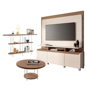 Estante Home Theater Quantum Off White Castanho e Aparador Infinity e Mesa de Centro Sky Castanho HB Móveis