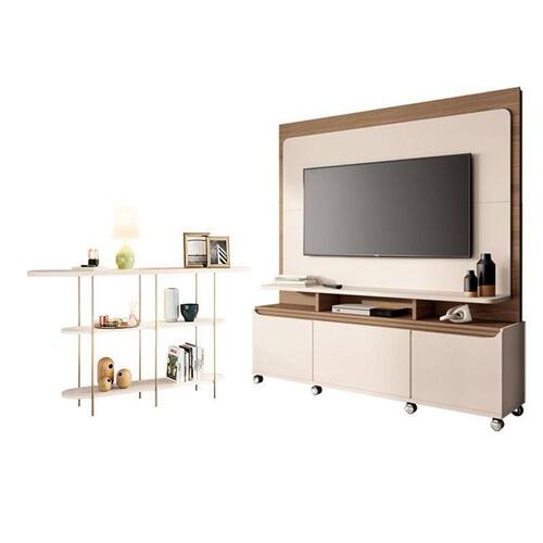 Estante Home Theater Quantum Off White Castanho e Aparador Infinity Off White HB Móveis