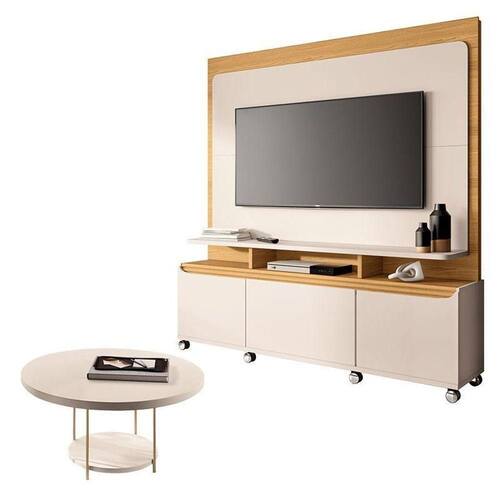 Estante Home Theater Quantum Off White Cinamomo e Mesa de Centro Sky Off White HB Móveis