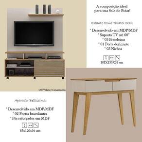 Estante Home Theater Star e Aparador Bellíssima Off White Cinamomo - Valdemóveis