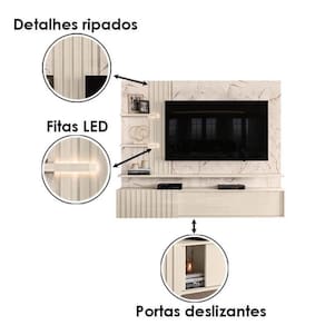 Estante Home Theater Suspenso Atena com Mesa de Centro Indianápolis Calacata Off White Madetec