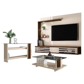 Estante Home Theater Suspenso com Aparador e Mesa de Centro Frizz Select Off White Savana – Madetec