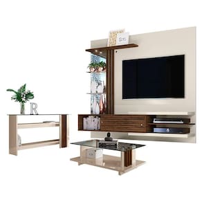 Estante Home Theater Suspenso com Aparador e Mesa de Centro Frizz Supreme Off White Savana – Madetec