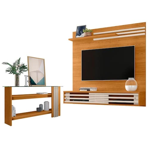 Estante Home Theater Suspenso Frizz Sublime Cinamomo Off White - Madetec