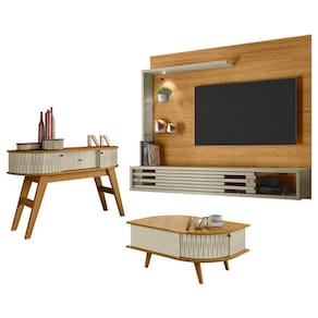 Estante Home Theater Suspenso Frizz Select com Aparador Estoril e Mesa de Centro Indianápolis Cumaru Opala - Madetec