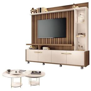 Estante Home Theater Titan Off White Castanho e Kit Mesa de Centro sky Off White - HB Móveis