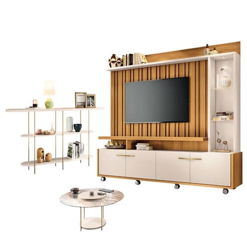 Estante Home Theater Titan Cinamomo Off White - HB Móveis