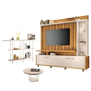 Estante Home Theater Titan Off White Cinamomo e Aparador Infinity e Mesa de Centro sky Off White - HB Móveis