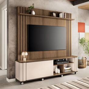 Estante Home Theater Trinus Castanho Off White - HB Móveis