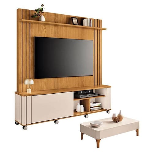 Estante Home Theater Trinus Cinamomo Off White com Mesa de Centro Liz Off White - HB Móveis