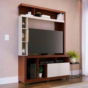 Estante Home Elba, design elegante e funcional para transformar sua sala de estar. Estrutura em MDP/MDF (15 e 12mm) com acabamento em pintura UV texturizada. Possui portas de giro com detalhes frisados (baixo relevo), prateleiras laterais, espaço para auto falante, passa fios, e 6 pés plásticos (montagem opcional) além de nichos funcionais. Suporta com segurança TVs de até 50 polegadas. Este produto será entregue em 1 volume.