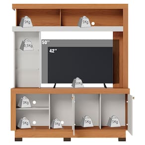 Estante Home Valenca, design elegante e funcional para transformar sua sala de estar. Estrutura em MDP/MDF (15 e 12mm) com acabamento em pintura UV texturizada. Possui portas de giro, nichos decorativos funcionais com espaço para auto falante, passa fios, prateleiras laterais em vidro (4mm), e pés plásticos (montagem opcional). Suporta com segurança TVs de até 50 polegadas. Este produto será entregue em 2 volumes.