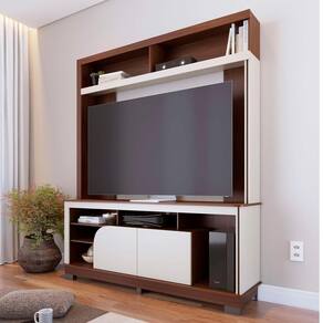 Estante Home Belaya, design elegante e funcional para transformar sua sala de estar. Estrutura em MDP/MDF (15 e 12mm) com acabamento em pintura UV texturizada. Possui portas de giro, nichos decorativos funcionais com espaço para auto falante, passa fios, detalhes curvos (porta e tampo), e pés plásticos (montagem opcional). Suporta com segurança TVs de até 65 polegadas. Este produto será entregue em 2 volumes.