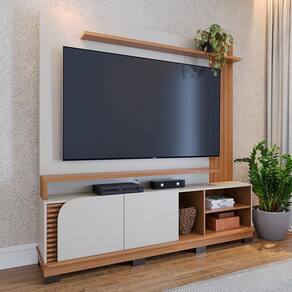 Estante Home Jurerê 1.8, combina design contemporâneo e funcionalidade para transformar sua sala. Estrutura em MDF/MDP (25, 15 e 12 mm), conta com acabamento em pintura UV texturizada. Possui 2 portas, dobradiças metálicas, 3 nichos, design usinado com detalhe ripado (painel e porta), passa fios e pés inclusos (montagem opcional). Suporta TVs de até 75 polegadas com segurança. Este produto será entregue em 2 volumes.