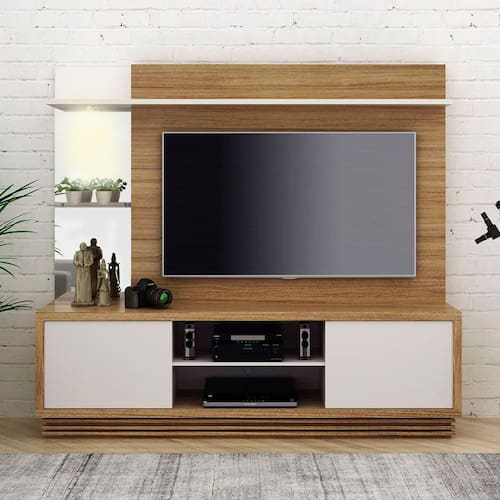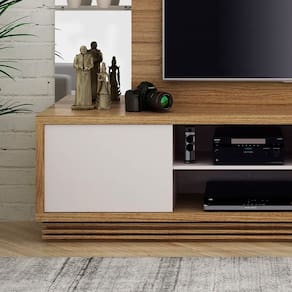 Dê um toque moderno e sofisticado à sua sala de estar com a Estante Rack para Sala! Fabricada em MDP 15 mm de alta qualidade e Acabamento em Pintura UV na cor, que garante maior durabilidade e resistência, ela possui duas portas, nicho e LED centralizado para destacar seus objetos decorativos. Com design elegante na cor Natural e Off White, a estante acomoda TVs de até 65 polegadas, proporcionando funcionalidade e organização ao seu ambiente. CARACTERÍSTICAS TÉCNICAS: - Estrutura em MDP 15 mm - Acabamento em Pintura UV na cor na cor Off White - Portas com Corrediças Metálicas - Com Led Cetralizado - Suporta TV de Até 65" Polegadas INFORMAÇÕES TÉCNICAS: Altura: 177,7 cm Largura: 200 cm Profundidade: 45 cm Peso: 92,25 kg INFORMAÇÕES ADICIONAIS: *ATENÇÃO: Não trabalhamos e não nos responsabilizamos pela montagem do móvel. Antes da montagem conferir se o produto está de acordo com o que comprou, produto montado e danificado pela montagem não será aceito troca. **As imagens ambientadas são meramente ilustrativas e podem apresentar itens que não compõe o produto. As cores do produto podem variar de acordo com o monitor, a iluminação do ambiente ou sua percepção visual. ***Limpeza: Deve ser feita com pano macio e seco ou levemente umedecido com água e sabão neutro. Não devem ser utilizados abrasivos como palha de aço e objetos cortantes. Garantia para defeitos de fabricação conforme Código de Defesa do Consumidor.