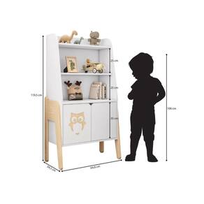 A Estante Infantil 3 Prateleiras e 2 Portas Corujinha foi desenvolvida para trazer beleza, diversão e praticidade ao quarto, pois além de ser uma peça decorativa, pode ser usada para guardar brinquedos ou outros objetos. Estrutura em Madeira e MDF. Acabamento predominante em poliéster (sistema de pintura UV) que dá ao produto um toque de proteção e acabamento, além de perfeita cobertura, sendo um sistema de pintura atóxico.