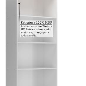 ESPECIFICAÇÕES: Estrutura em MDF Pintura UV atóxica Prateleiras Suporta até 5Kg em cada prateleira Pés em MDF Sistema antitombamento