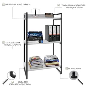 Estante Kuadra 60x40x104cm C/03 Prateleiras Branco Chess / Branco Chess / Sobre o ProdutoEstante Kuadra 60X40X104cm C/03 Prateleiras Amadeirado / Est.PretaDescrição do Produto:A Estante Kuadra KUES63 tem montagem simples e versátil, podendo ser utilizada em diversas composições com outros móveis em diversos ambientes, como quarto e escritório, na sala, cozinha ou seu depó Linha Kuadra tem seu design com inspiração no estilo industrial, que remete muito a decoração usada nos Lofts das grandes metrópoles nos anos 60 e 70. Harmonizando o metal e os tons de madeira, foram projetados móveis versáteis e com estilo, que podem compor ambientes íveis cheios de personalidade, perfeitos para você decorar sua casa ou seu trabalho, tendo um resultado que caminha do estilo rústico ao Inclusos:1 EstanteDimensões dos Produtos:Estante Kuadra 60X40X104cm C/03 Prateleiras Amadeirado / 60 x 40 x 104 cmInformações Logísticas (Comp. X Prof. X Alt.) 103 x 41 x 11 cm - Peso: 12,01 KgPeso Total: 12,01 KgObservações:Não acompanha acessórios decorativos. Imagens meramente ilustrativas.Informações Técnicas / Características:- Cor do Produto: Amadeirado / - Marca: Compace- Modelo: KUES63- Linha: Kuadra- Material: Mdp- Material da Estrutura / Pés: Aço- Acabamento: BP Acetinado- Escala de Brilho: Fosco- Fita de Borda: Pvc- Possui Portas: Não - Possui Prateleiras: 3- Peso Máximo por Prateleira: 10 kg- Possui Pés: 2- Pés Niveladores: Sim - Acabamento Estrutura: Epóxi-Pó Texturizado - Suporta Até (kg): 30 kg- Comprimento: 60cm- Profundidade: 40cm- Altura: 104cm - Peso Lí.: 11,32Kg- Recomendações de Uso, Manutenção e Limpeza: Para a limpeza, utilize flanela seca ou pano macio levemente umedecido em água. Utilize um pano seco em seguida. Evite com produtos químicos (solventes, thinner, acetona, etc) e não utilize nenhum tipo de esponja de aço.- Necessita de Montagem: Sim / Acompanha Manual de Montagem- Complexidade da Montagem: Média: pode ser montado por mais de uma pessoa e/ou necessite de maior conhecimento para montagem.- Garantia: 6 meses Acabamento: BP Acetinado | Escala de Brilho: Fosco | Fita de Borda: Pvc | Material da Estrutura: Aço | Depth Front to Back: 40 cm | Acabamento da Estrutura: Epóxi-Pó Texturizado | Depth Height Floor to Top: 104 cm | Depth Width Side to Side: 60 cm | Quantidade de caixas de embalagem: 1 | Modelo: Estante Kuadra | Marca: Compace | Produto: Estante | Cômodo indicado: Escritórios | Cor: Multicolorido | Tonalidade: Multicolorido | Material: MDP | do modelo: KUES63 | Baterias são necessárias?: false | Palavras-chave de Pesquisa: Não Aplicável | da peça: KUES63 | de caixas: 1 | Componentes incluídos: Manual de montagem e kit acessórios | Fabricante: Compace | Quantidade de itens: 1 | Principais Características do Produto 0: Escritório | Certificação de teste externa: Não aplicável | Principais Características do Produto 1: BP Acetinado | Principais Características do Produto 2: Estrutura de aço | Exige montagem: true | Acabamento do móvel: BP Acetinado | Peso do item: ;unit=kilograms | Dimensões do item P x L x A: width#value=60;depth#unit=centimeters;height#value=104;height#unit=centimeters;depth#value=40;width#unit=centimeters | Recursos da Mesa: | Duração da Garantia: | Coleção de Antiguidade: | Tipo de Garantia: | Recursos da Escrivaninha: | Tipo de Mesa: | Desing da Escrivaninha: | País de Origem: | Móvel Dobrável: | Dimensões do Produto (A x L x C), sem a caixa de embalagem: | Montagem: | Base da Mesa: | Produto personalizado: | Motivo de Isenção Anvisa: | Data de validade Anvisa: | Tamanho Do Pacote: | Shape: | Formato da Escrivaninha: | Nr. do Lote do Produto: | Comprimento: | Altura da Mesa: | Código Anvisa do Produto: | Formato do Espelho: | de Assentos: | Qtd. de Produto no Lote: | Funcionalidades: | Temas de Estampas: | Estilo: | Quantidade: Cor: Branco Chess /