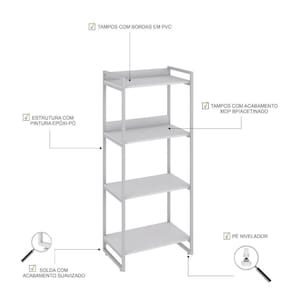 Sobre o ProdutoEstante Kuadra 60X40X146cm C/04 Prateleiras Amadeirado / Est.BrancaDescrição do Produto:A Estante Kuadra KUES64 é um produto prático e versátil, que pode ser utilizado em diversos ambientes, como quarto e escritório, na sala, cozinha ou seu depó Linha Kuadra tem seu design com inspiração no estilo industrial, que remete muito a decoração usada nos Lofts das grandes metrópoles nos anos 60 e 70. Harmonizando o metal e os tons de madeira, foram projetados móveis versáteis e com estilo, que podem compor ambientes íveis cheios de personalidade, perfeitos para você decorar sua casa ou seu trabalho, tendo um resultado que caminha do estilo rústico ao Inclusos:1 EstanteDimensões dos Produtos:Estante Kuadra 60X40X146cm C/04 Prateleiras Amadeirado / 60 x 40 x 146 cmInformações Logísticas (Comp. X Prof. X Alt.) 145 x 41 x 10 cm - Peso: 16,12 KgPeso Total: 16,12 KgObservações:Não acompanha acessórios decorativos. Imagens meramente ilustrativas.Informações Técnicas / Características:- Cor do Produto: Amadeirado / - Marca: Compace- Modelo: KUES64- Linha: Kuadra- Material: Mdp- Material da Estrutura / Pés: Aço- Acabamento: BP Acetinado- Escala de Brilho: Fosco- Fita de Borda: Pvc- Possui Portas: Não - Possui Prateleiras: 4- Peso Máximo por Prateleira: 10 kg- Possui Pés: 2- Pés Niveladores: Sim - Acabamento Estrutura: Epóxi-Pó Texturizado - Suporta Até (kg): 40 kg- Comprimento: 60cm- Profundidade: 40cm- Altura: 146cm - Peso Lí.: 15,1Kg- Recomendações de Uso, Manutenção e Limpeza: Para a limpeza, utilize flanela seca ou pano macio levemente umedecido em água. Utilize um pano seco em seguida. Evite com produtos químicos e não utilize nenhum tipo de esponja de aço.- Necessita de Montagem: Sim / Acompanha Manual de Montagem- Complexidade da Montagem: Média- Garantia: 6 meses