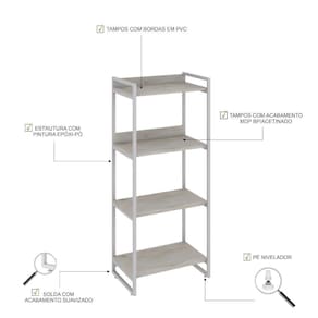 Sobre o ProdutoEstante Kuadra 60X40X146cm C/04 Prateleiras Amadeirado / Est.BrancaDescrição do Produto:A Estante Kuadra KUES64 é um produto prático e versátil, que pode ser utilizado em diversos ambientes, como quarto e escritório, na sala, cozinha ou seu depó Linha Kuadra tem seu design com inspiração no estilo industrial, que remete muito a decoração usada nos Lofts das grandes metrópoles nos anos 60 e 70. Harmonizando o metal e os tons de madeira, foram projetados móveis versáteis e com estilo, que podem compor ambientes íveis cheios de personalidade, perfeitos para você decorar sua casa ou seu trabalho, tendo um resultado que caminha do estilo rústico ao Inclusos:1 EstanteDimensões dos Produtos:Estante Kuadra 60X40X146cm C/04 Prateleiras Amadeirado / 60 x 40 x 146 cmInformações Logísticas (Comp. X Prof. X Alt.) 145 x 41 x 10 cm - Peso: 16,12 KgPeso Total: 16,12 KgObservações:Não acompanha acessórios decorativos. Imagens meramente ilustrativas.Informações Técnicas / Características:- Cor do Produto: Amadeirado / - Marca: Compace- Modelo: KUES64- Linha: Kuadra- Material: Mdp- Material da Estrutura / Pés: Aço- Acabamento: BP Acetinado- Escala de Brilho: Fosco- Fita de Borda: Pvc- Possui Portas: Não - Possui Prateleiras: 4- Peso Máximo por Prateleira: 10 kg- Possui Pés: 2- Pés Niveladores: Sim - Acabamento Estrutura: Epóxi-Pó Texturizado - Suporta Até (kg): 40 kg- Comprimento: 60cm- Profundidade: 40cm- Altura: 146cm - Peso Lí.: 15,1Kg- Recomendações de Uso, Manutenção e Limpeza: Para a limpeza, utilize flanela seca ou pano macio levemente umedecido em água. Utilize um pano seco em seguida. Evite com produtos químicos e não utilize nenhum tipo de esponja de aço.- Necessita de Montagem: Sim / Acompanha Manual de Montagem- Complexidade da Montagem: Média- Garantia: 6 meses
