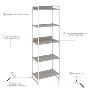Sobre o ProdutoEstante Kuadra 60X40X187cm C/05 Prateleiras Amadeirado / Est.BrancaDescrição do Produto:A Estante Kuadra KUES65 é um produto prático e versátil, que pode ser utilizado em diversos ambientes, como quarto e escritório, na sala, cozinha ou seu depó Linha Kuadra tem seu design com inspiração no estilo industrial, que remete muito a decoração usada nos Lofts das grandes metrópoles nos anos 60 e 70. Harmonizando o metal e os tons de madeira, foram projetados móveis versáteis e com estilo, que podem compor ambientes íveis cheios de personalidade, perfeitos para você decorar sua casa ou seu trabalho, tendo um resultado que caminha do estilo rústico ao Inclusos:1 EstanteDimensões dos Produtos:Estante Kuadra 60X40X187cm C/05 Prateleiras Amadeirado / 60 x 40 x 187 cmInformações Logísticas (Comp. X Prof. X Alt.) 187 x 41 x 10 cm - Peso: 19,542 KgPeso Total: 19,542 KgObservações:Não acompanha acessórios decorativos. Imagens meramente ilustrativas.Informações Técnicas / Características:- Cor do Produto: Amadeirado / - Marca: Compace- Modelo: KUES65- Linha: Kuadra- Material: Mdp- Material da Estrutura / Pés: Aço- Acabamento: BP Acetinado- Escala de Brilho: Fosco- Fita de Borda: Pvc- Possui Portas: Não - Possui Prateleiras: 5- Peso Máximo por Prateleira: 10 kg- Possui Pés: 2- Pés Niveladores: Sim - Acabamento Estrutura: Epóxi-Pó Texturizado - Suporta Até (kg): 50 kg- Comprimento: 60cm- Profundidade: 40cm- Altura: 187cm - Peso Lí.: 18,44Kg- Recomendações de Uso, Manutenção e Limpeza: Para a limpeza, utilize flanela seca ou pano macio levemente umedecido em água. Utilize um pano seco em seguida. Evite com produtos químicos e não utilize nenhum tipo de esponja de aço.- Necessita de Montagem: Sim / Acompanha Manual de Montagem- Complexidade da Montagem: Média- Garantia: 6 meses