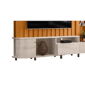Le Mans, um produto robusto e elegante que vai se tornar a estrela da sua sala de estar! Com 2,425m de largura, ele suporta TVs de até 70 polegadas. Um destaque nesse home é seu painel que traz o conceito do ripado com chapas em diagonal, que proporciona volumetria e a ideia de movimento. O requinte fica por conta das prateleiras de vidro 5mm, que combinam com o LED, trazendo um charme e iluminação para o ambiente. Já a organização fica por conta das 2 gavetas com corrediças telescópicas e seus nichos. Trouxemos nesse móvel uma inovação, e que ainda não foi visto no mercado brasileiro de móveis. A porta que faz curva! Uma porta em MDF deslizante e flexível acompanha as curvas da base e do tampo. Confira as cores disponíveis e traga inovação e sofisticação ao seu lar.
