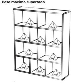 Peso máximo suportado: 30kg (3kg por nicho)