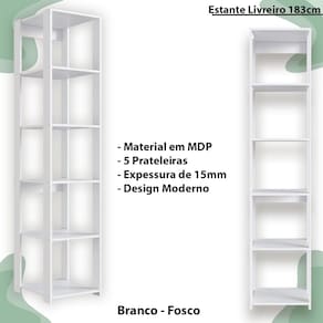 Feito em MDP de 15mm com um sofisticado acabamento fosco. Além de ser prático, foi pensado para pessoas que buscam mais do que um simples móvel, mas sim uma peça que traz organização e modernidade ao dia a dia. Com 05 prateleiras espaçosas, cada uma delas suportando até 07kg. É ideal para ser usada em diversos cômodos e perfeita para espaços menores. Este móvel chegará em sua casa separado em 01 Volume.