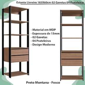 Estante Livreiro 183x60cm 02 Gavetas Preto Montana Proddy Preto Montana
