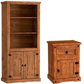Acompanha o produto: - 1 x Estante Livreiro 2 Portas 100% Madeira Rustic Line1 x Mesa de Cabeceira 1 Gaveta e 1 Porta Madeira Maciça Rustic LineManual de montagemAcessórios de montagem Garantia: - 3 Meses