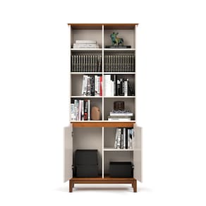 Características: Estrutura MDP Acabamento UV 07 Prateleiras com Amplo Espaço 08 Nichos Régua Dupla Face (2 Opções de Montagem) 02 Portas Articuladas com dobradiças metálicas Sem Puxadores Externos Estrutura dos Pés em madeira maciça Suporta 50kg Distribuídos