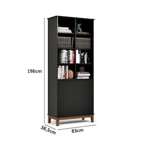 Características: Estrutura MDP Acabamento UV 07 Prateleiras com Amplo Espaço 08 Nichos Régua Dupla Face (2 Opções de Montagem) 02 Portas Articuladas com dobradiças metálicas Sem Puxadores Externos Estrutura dos Pés em madeira maciça Suporta 50kg Distribuídos