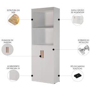 Produzido em MDP, garante resistência para o uso diário, com estrutura firme e acabamento bem definido. As 2 portas convencionais protegem os itens armazenados, trazendo mais ordem ao Ambiente Organizado.