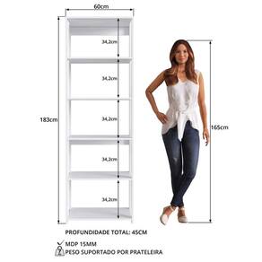 Estante Livreiro Branca com 5 Prateleiras 60x45x183cm Closet Organizador Multiuso