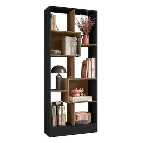 Estante Livreiro Com 8 Nichos Preto Fosco/carvalho - Qmovi Preto Fosco/carvalho Estante Livreiro com 8 Nichos - Qmovi A Estante Livreiro com 8 Nichos é um produto multifuncional, ideal para decorar e organizar diversos ambientes. Com um design moderno, composto por seus nichos de formatos diferenciados, ele leva beleza e praticidade ao seu espaço. O produto possui sistema antitombamento, que garante segurança e evita riscos de acidentes. ESPECIFICAÇÕES: - Estrutura em MDP - Pintura UV - 8 Nichos - Sistema antitombamento para evitar riscos de acidentes - Nichos com tamanhos variados para organização de objetos e decorações - Ideal para colocação de livros e objetos decorativos - Multifuncional, pode ser utilizado em diversos ambientes