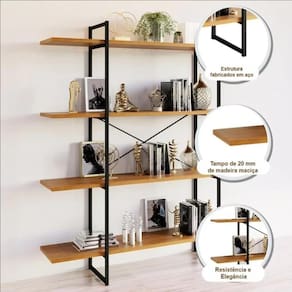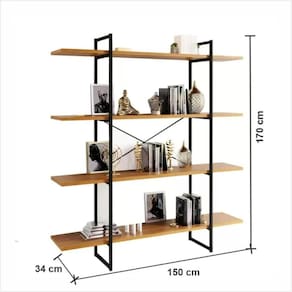 Estante Livreiro Estilo Industrial Málaga 4 Prateleiras 170cmx150cm