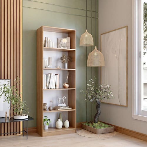 Com ótima altura e visual moderno, a Estante Livreiro Multiuso Montreal é a escolha ideal para você que adora livros ou colecionar objetos, perfeita para organizar sua sala de estar ou escritório. Além de possuir 5 nichos bem distribuídos, na medida certa para manter todos os objetos no seu devido lugar, é uma maravilhosa peça multifuncional que vai inovar o seus ambientes com um toque de charme e beleza! Acabamento da Prateleira: Melamínico Acabamento dos Pés: BP Altura dos Pés: 1.5 Ambiente Principal: Sala de Estar Complexidade da Montagem: Média: pode ser montado por mais de uma pessoa e/ou necessite de maior conhecimento para montagem Cor: Freijó Cor do Produto: Freijó Cor Flex: Não Cor Interna: Freijó Escala de Brilho: Semi-Brilho Escala de Brilho da Prateleira: Semi-Brilho Itens Inclusos: 1 Estante Multiuso, Kit Ferragens e Manual de Montagem Manual de Montagem e Instalação: https://product-hub-prd.madeiramadeira.com.br/742336/documents/742336_manual.pdf Material da Prateleira: MDP Material dos Pés: Plástico Material Principal: MDP Montagem Flex: Não Necessita Montagem: Sim Origem do Produto: Nacional Peso: 23.4 Peso Máximo por Prateleira: 5 Possui Espelho: Não Possui Possui iluminação: Não Possui Pés: 04 Possui Portas: Não Possui Prateleiras: Sim Possui Rodízio: Não Possui Vidro: Não Quantidade de Nichos: 05 Recomendações de Uso, Manutenção e Limpeza: Limpar com pano umedecido, sem adição de produtos químicos. Sapatas Niveladoras: Não Sistema de Montagem: Parafusos, pregos, cantoneira e cavilhas. Suporta Até (kg): 30