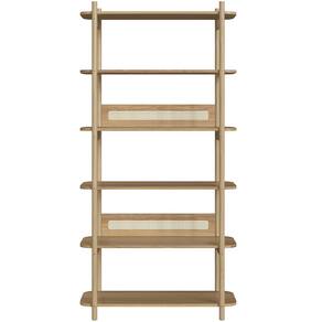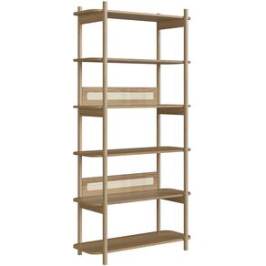 Com estrutura robusta aliada às seis prateleiras, você terá amplo espaço para armazenar seus livros favoritos, exibir coleções e acomodar objetos de decoração que contam a sua história. Além disso, os pés em madeira maciça garantem não apenas resistência, mas também um toque de charme rústico que complementa qualquer ambiente. Essa base sólida confere estabilidade, permitindo que você organize sua estante da maneira que preferir. Para completar o charme, O aplique em tela sintética no painel traseiro traz um toque artesanal, suave e acolhedor.