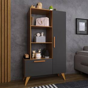 Estante Livreiro Multiuso 6213 Retrô 1 Porta e 1 Gaveta - Indékes