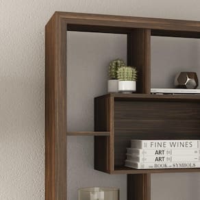 aparador repleto de objetos decorativos!! Sensacional, né? Tudo graças a suas 7 prateleiras que formam 8 nichos, ótimos para abrigar itens diversos. Ah, e ela conta com estrutura em MDP e acabamento em pintura UV de qualidade, agregando durabilidade e resistência!