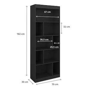 A Estante Multiuso é perfeita para quem busca organização com estilo e praticidade. Composta por 4 prateleiras bem distribuídas, oferece amplo espaço para acomodar livros, objetos decorativos, utensílios ou materiais de trabalho de forma acessível e visualmente agradável. Fabricada em MDP resistente, apresenta um design moderno e versátil que se adapta facilmente a diversos ambientes, como salas, escritórios, quartos ou até mesmo áreas de estudo. Uma peça funcional e elegante para deixar tudo no lugar com personalidade. CARACTERÍSTICAS TÉCNICAS: - Estrutura em MDP de 15 mm - Acabamento Fosco cor Preto - Dispõe de 9 Nichos e 4 Prateleiras - Suporta 5 kg por Prateleira INFORMAÇÕES TÉCNICAS: Altura: 182 cm Largura: 70 cm Profundidade: 30 cm Peso: 21 kg INFORMAÇÕES ADICIONAIS: -ATENÇÃO: Não trabalhamos e não nos responsabilizamos pela montagem do móvel. Antes da montagem conferir se o produto está de acordo com o que comprou, produto montado e danificado pela montagem não será aceito troca. -As imagens ambientadas são meramente ilustrativas e podem apresentar itens que não compõe o produto. As cores do produto podem variar de acordo com o monitor, a iluminação do ambiente ou sua percepção visual. -Limpeza: Deve ser feita com pano macio e seco ou levemente umedecido com água e sabão neutro. Não devem ser utilizados abrasivos como palha de aço e objetos cortantes. Garantia para defeitos de fabricação conforme Código de Defesa do Consumidor.