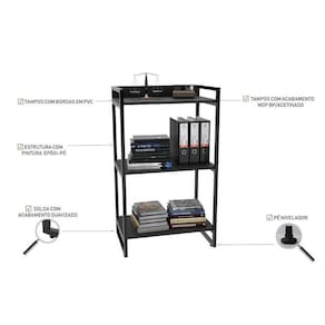 Características do Produto Material da Estrutura: MDP BP 15 mm/Aço. Peso Suportado: 5 Kg por prateleira. Tonalidade: Preto Onix. Acabamento: BP Acetinado e Pintura Epóxi. Escala de Brilho: Fosco. Possui Prateleiras: Sim. Material das Prateleiras: MDP. Possui Pés: Sim, Aço com pintura epóxi. Possui Rodízios: Não. Diferenciais: - Design moderno. - Fita de borda em PVC. - Pés niveladores. - Solda com acabamento suavizado. - Estrutura reforçada. Sistema de Montagem: Minifix / Cavilhas / Parafs. Manual de Montagem: Sim. Complexidade da Montagem: Baixa. Conteúdo da Embalagem: 1 Estante. Volumes: 1 Volume. Garantia do Fabricante: 3 meses contra defeito de fabricação. Montagem: Recomendamos que seja feita por um . Recomendação de Limpeza: Utilize pano levemente úmido.