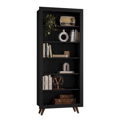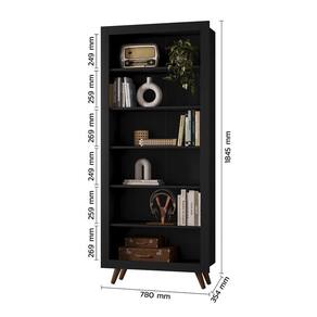Estante Livreiro Retrô 6 Prateleiras - Qmovi A Estante Livreiro Retrô se destaca como um elemento essencial para a organização diária. Suas prateleiras ajustáveis oferecem flexibilidade para armazenar objetos variados, desde os essenciais do cotidiano até peças decorativas que expressam sua personalidade. Seu design marcante, com molduras elegantes e pés de madeira maciça no estilo retrô, é a escolha perfeita para quem busca um toque de modernidade e sofisticação no ambiente.