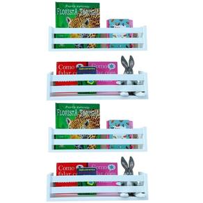 Estante Para Livros e Brinquedos Infantis Nicho Prateleira Organizadora Bonecos 4un40cm Nichos enviados montados para você, de acabamento perfeito. Qualidade comprovada por nossos clientes. Fabricação artesanal da Arte Cedro decoração O que vem Kit 4 prateleiras modelo livros, brinquedos e multiuso. 2 ripas frontais. Kit de instalação do produto. Nichos para organização e decoração dos ambientes. Podem ser instalados em Várias posições de acordo com sua necessidade. Produto versátil, perfeito para qualquer ambiente, quarto, cozinha, sala, banheiro etc. Fácil instalação, bastando fixar na parede. Suporta até 8 kilos cada. Medidas 40 cm comprimento 12 cm altura 10 cm profundidade Material MDF 15mm com acabamento branco real, superior á pintura em qualidade e durabilidade. Produzido com fita de borda em PVC, incomparável ás de papel utilizadas no mercado. Marca: Não Informado
