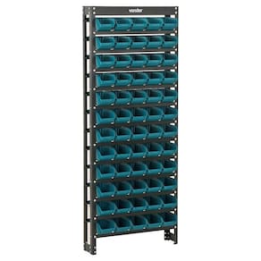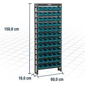 Material da estante: Estrutura em chapa metálica Quantidade de gaveteiros: 60 Tamanho dos gaveteiros: Nº 3 Altura da estante: 150,0 cm Largura da estante: 60,0 cm Profundidade da estante: 16,0 cm Cor da estante: Preta Cor dos gaveteiros: Azul Massa aproximada peso : 10,26 kg