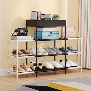 Organização eficiente de sapatos e acessórios.