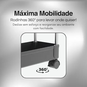 - Rodízios que giram 360, proporcionando mobilidade e praticidade no uso.