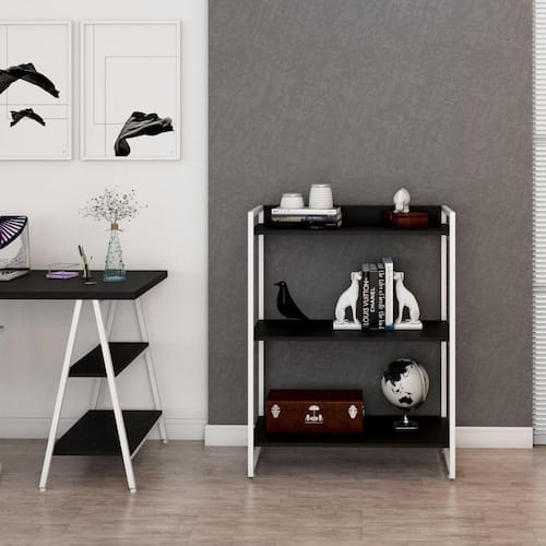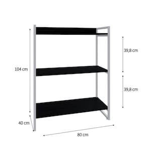 Estante Multiuso 104cmx80cm 3 Prateleiras Kuadra Preto Ônix/Est.Branca