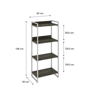 Estante Multiuso 146cmx60cm com 4 Prateleiras Kuadra Carvalho Dark/Est.Branca - Marrom