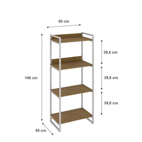Estante Multiuso 146cmx60cm com 4 Prateleiras Kuadra Lâmina Mel/Est.Branca - Marrom